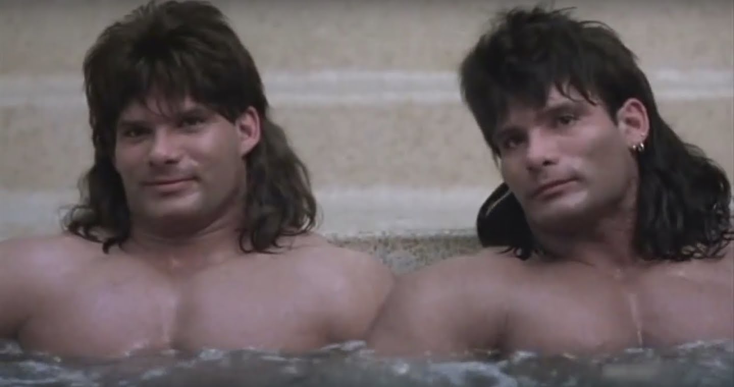 The stars of the movie, the Barbarian Brothers, superficially seem to be spectacular lunkheads. As weight lifters, they subscribed to a philosophy of just getting as big as they could, never mind the usual aesthetics of bodybuilding. And so the brothers were, and presumably still are, massive, and dressed to show it off, wearing the same sorts of torn or loose gym clothes favored by Jennifer Beals in "Flashdance." And both brothers have rather glorious mullets, perhaps the most despised male hairstyle.